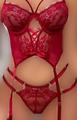 بادی دانتل پشت ضربدری به همراه شورت و جوراب   سایزبندی: L , XL L: مناسب 34.36.38 XL: مناسب 40.42.44
